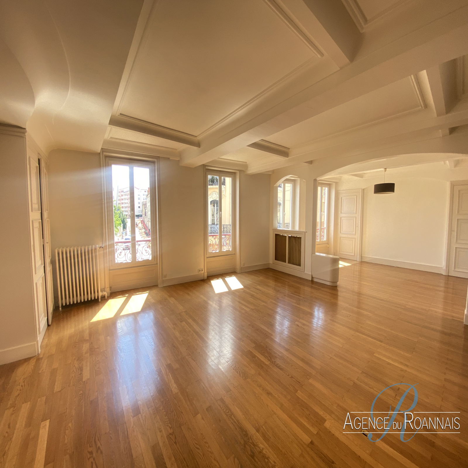 L'Agence du Roannais vous présente cette nouvelle exclusivité à vendre en plein centre ville de Roanne, au 2ème et dernier étage dans un bel immeuble de caractère face à la mairie, un bel appartement de Type 5 d'une superficie loi carrez de 127.87m².
