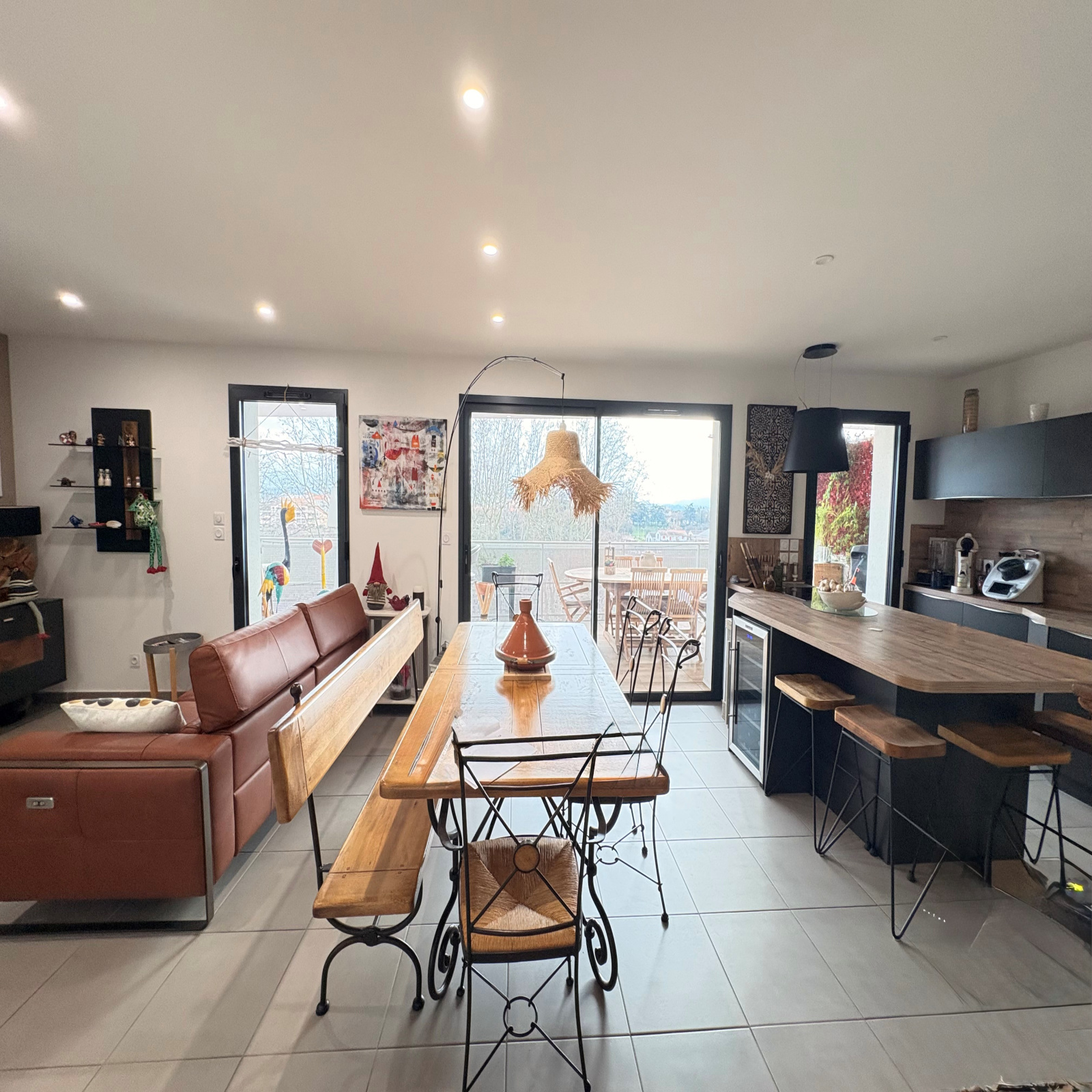La cuisine ouverte, aménagée et équipée avec soin, ravira les amateurs de prestations de qualité.