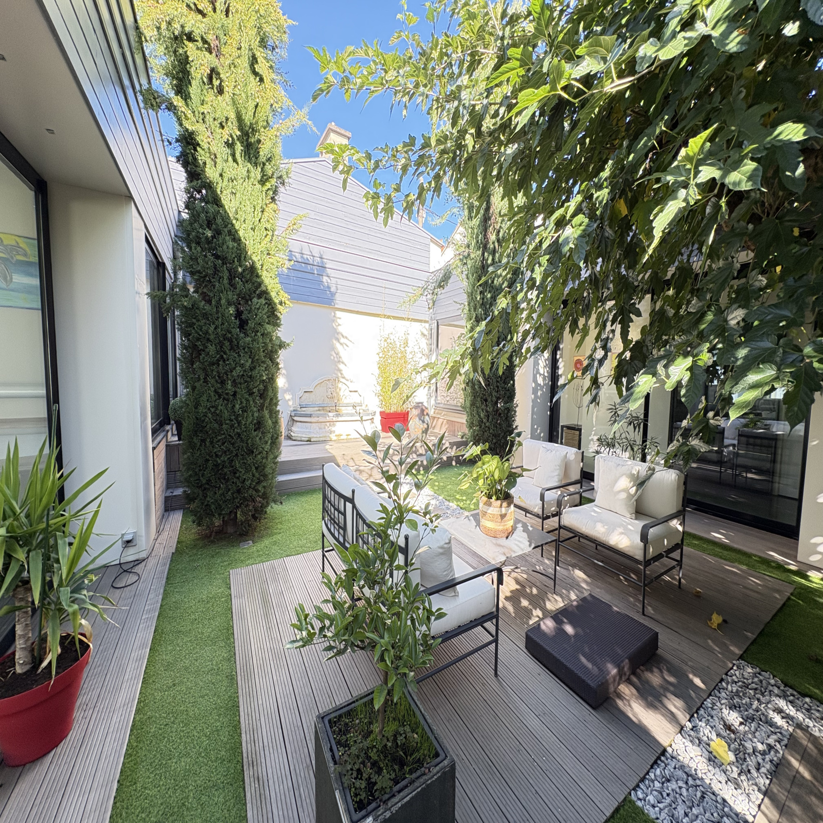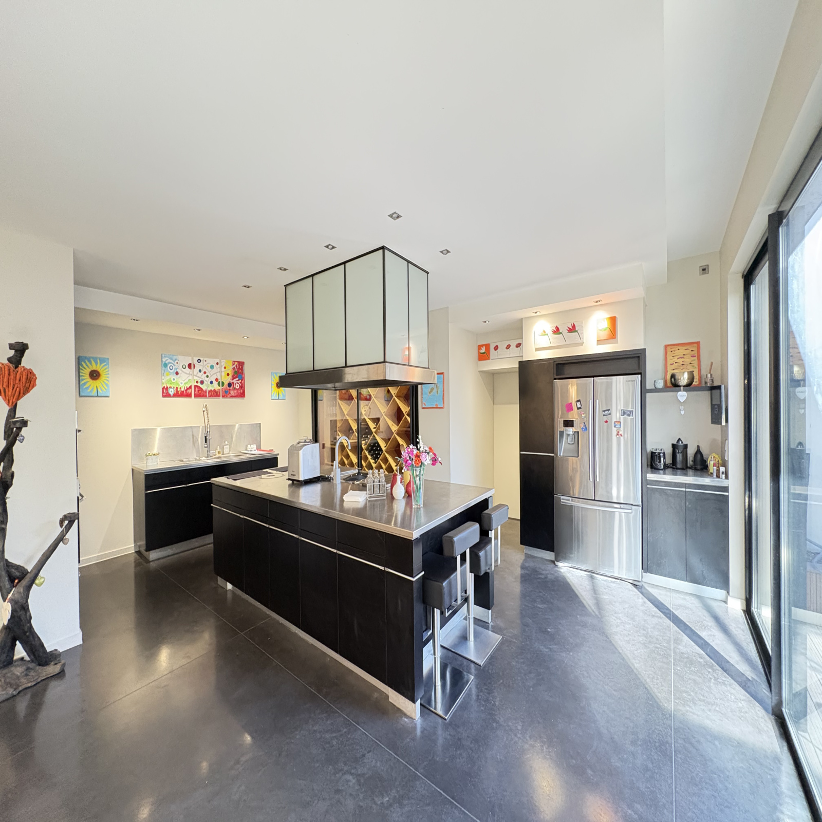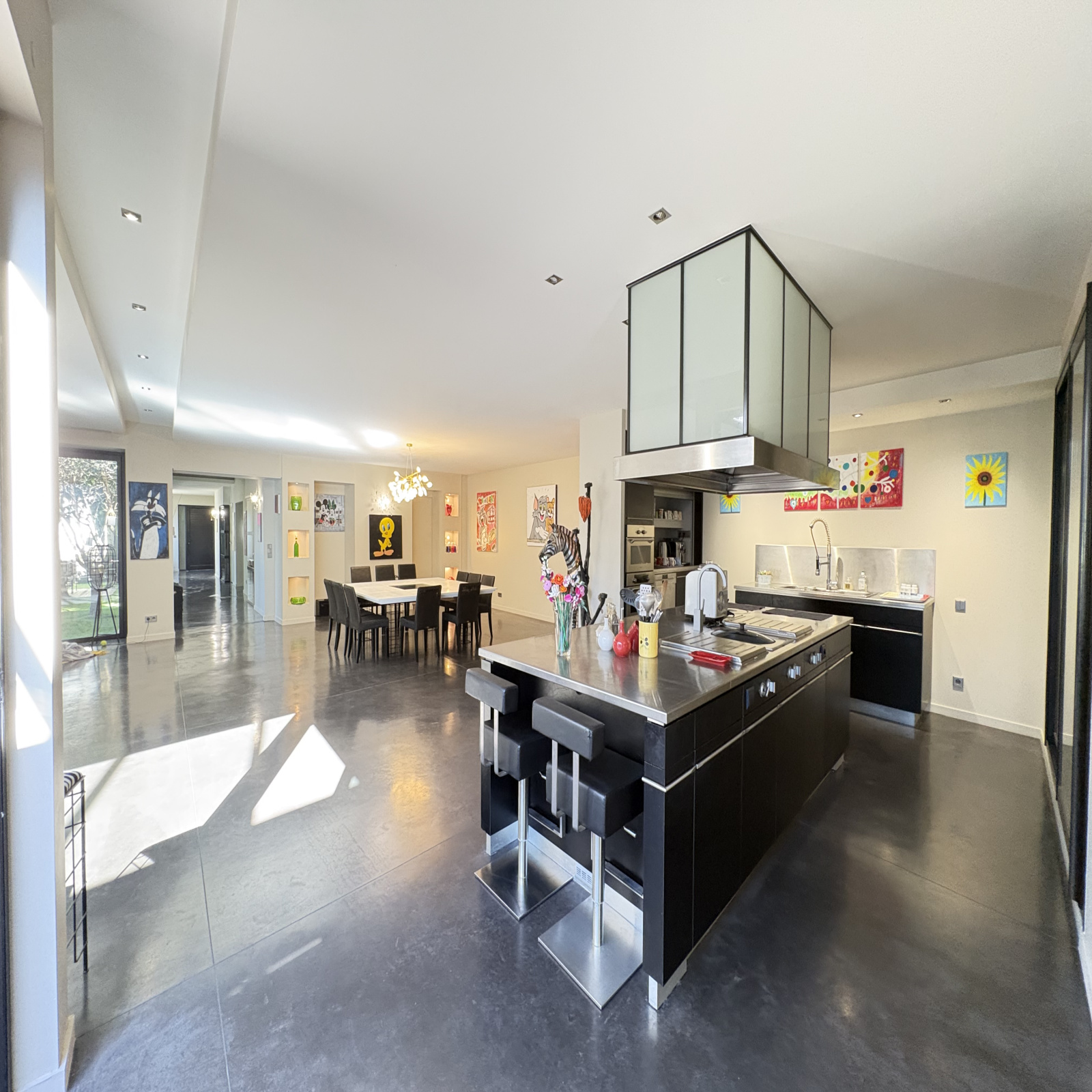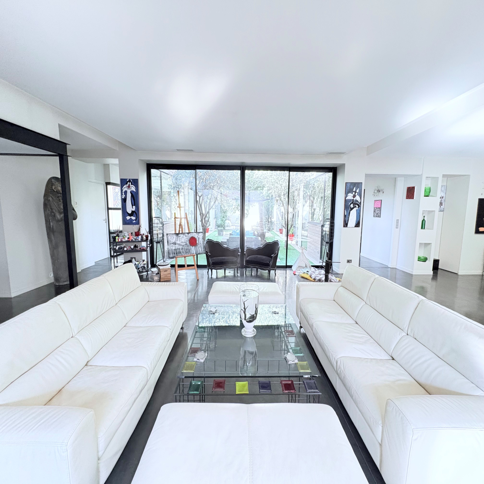 Vous serez immédiatement conquis par sa pièce de vie magistrale de 127 m², ouverte sur une cuisine américaine entièrement équipée, agrémentée d’une cave à vin élégante et d’un second patio de 22 m² pour des instants de détente en toute intimité, à l'écart un salon cosy de 30m².
