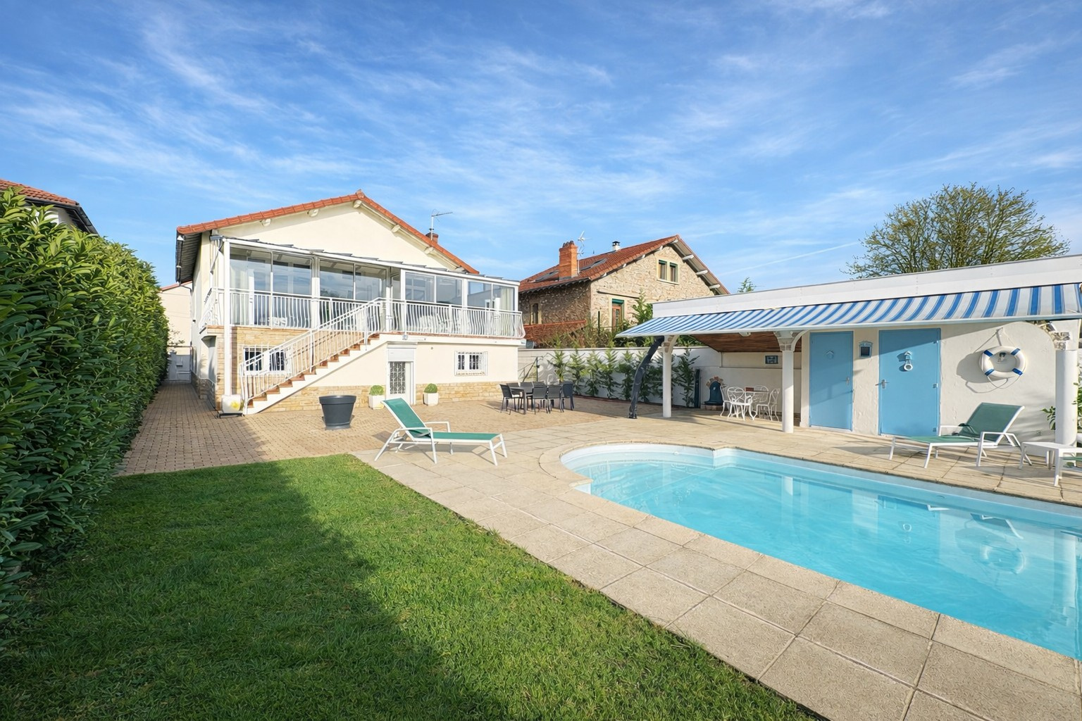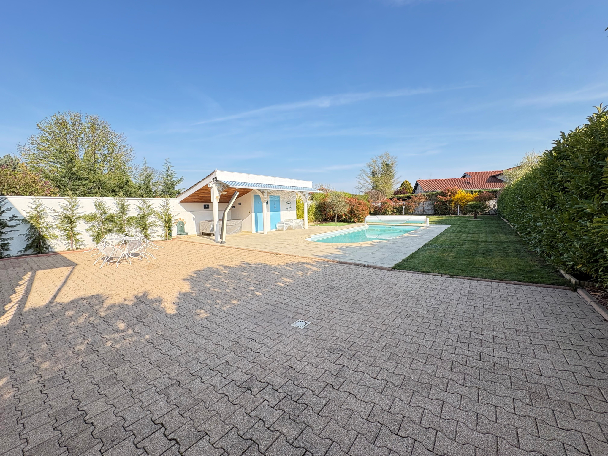 À l’extérieur, le terrain clos et soigneusement entretenu de 800 m² accueille une piscine avec son pool house, véritable lieu de détente et de convivialité aux beaux jours.