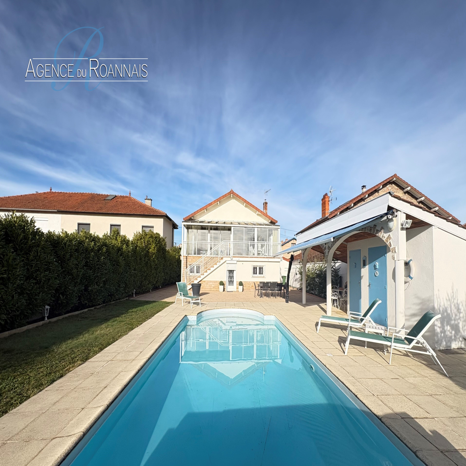 L'Agence du Roannais vous présente en exclusivité à la vente aux portes de Roanne, sur la commune de Riorges, dans un quartier résidentiel et prisé, cette grande maison des années 50