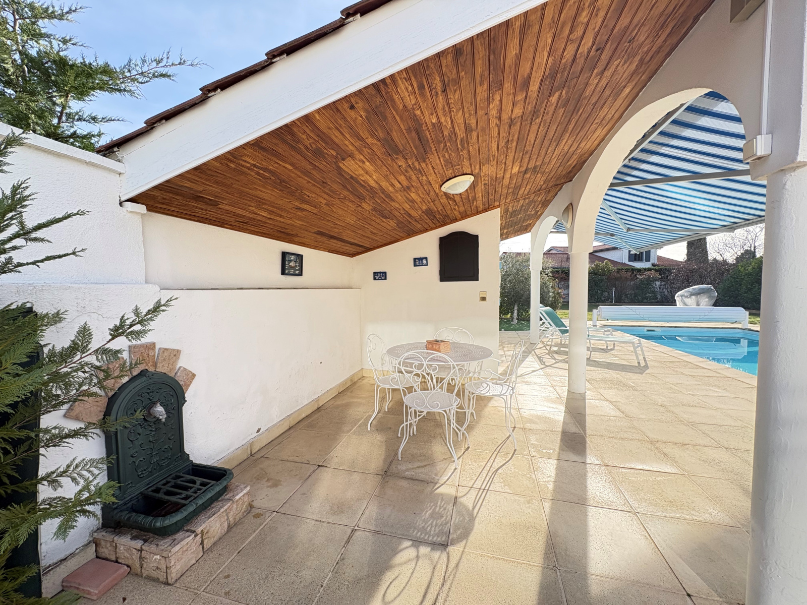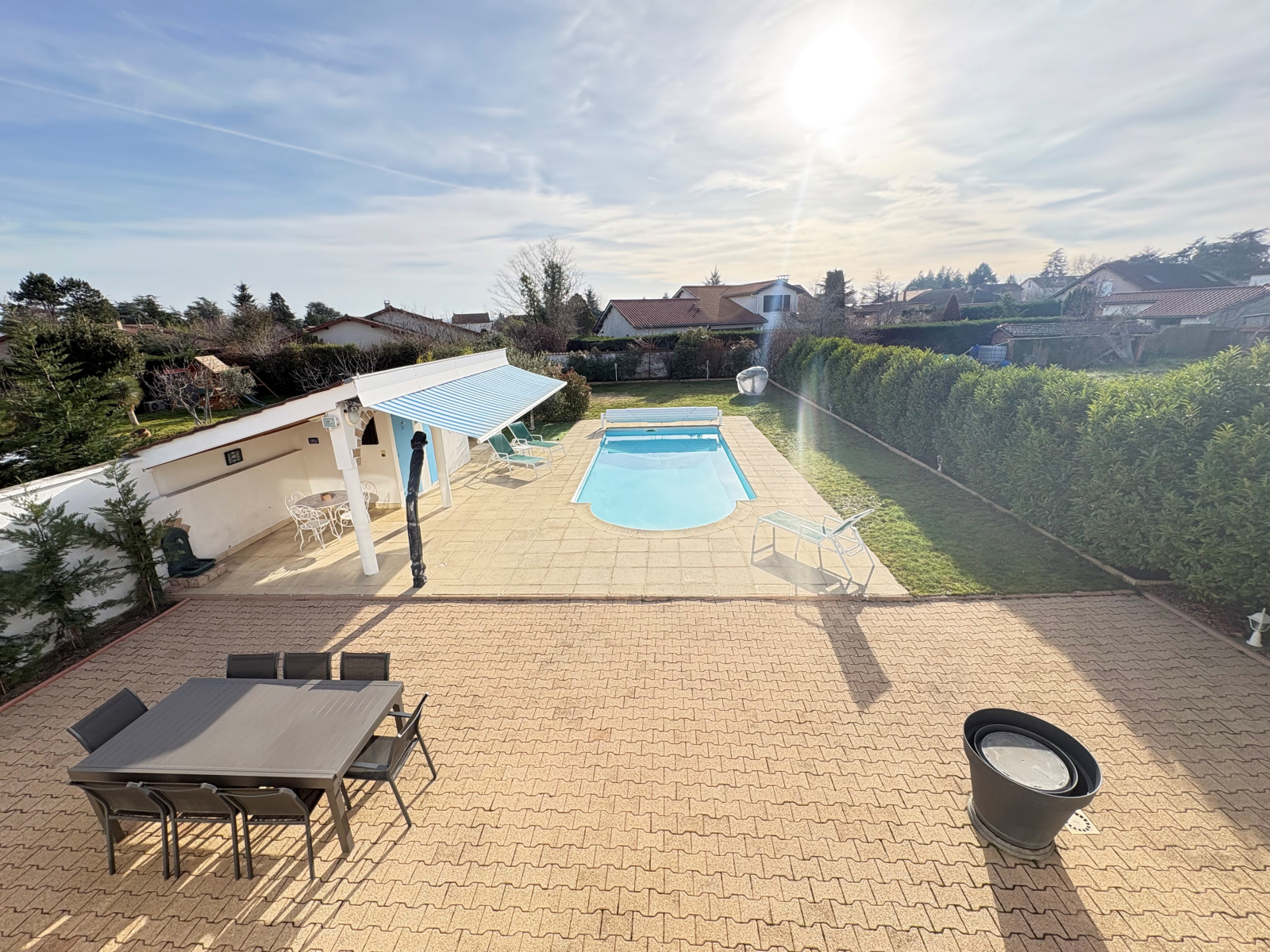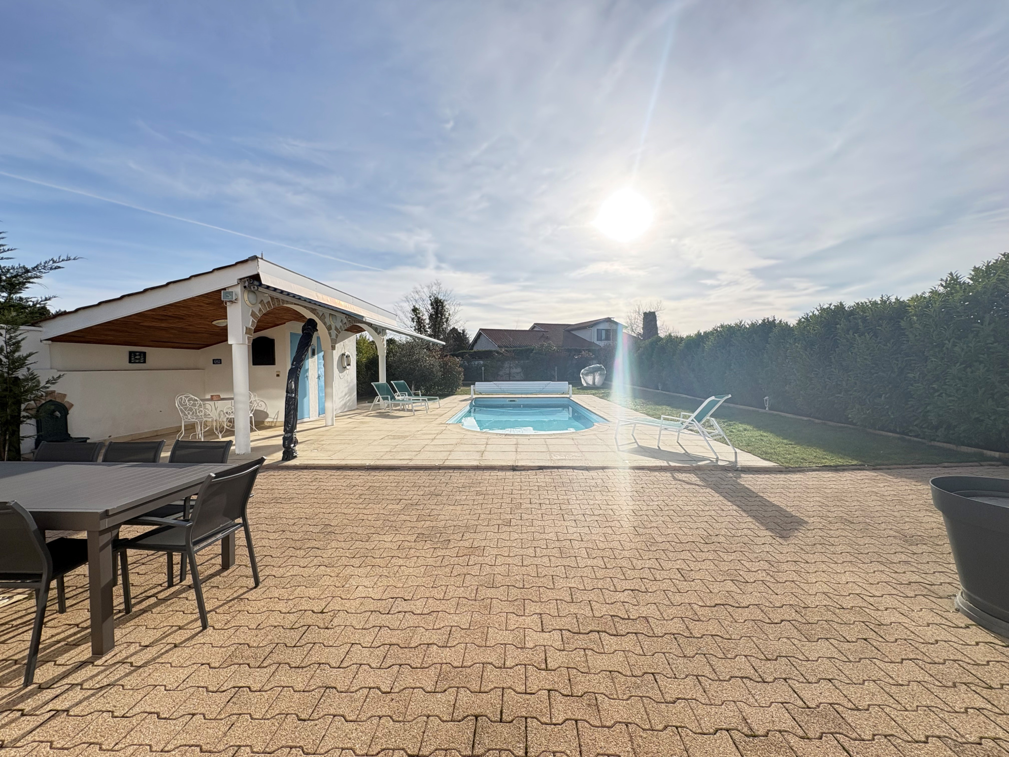 À l’extérieur, le terrain clos et soigneusement entretenu de 800 m² accueille une piscine avec son pool house, véritable lieu de détente et de convivialité aux beaux jours.