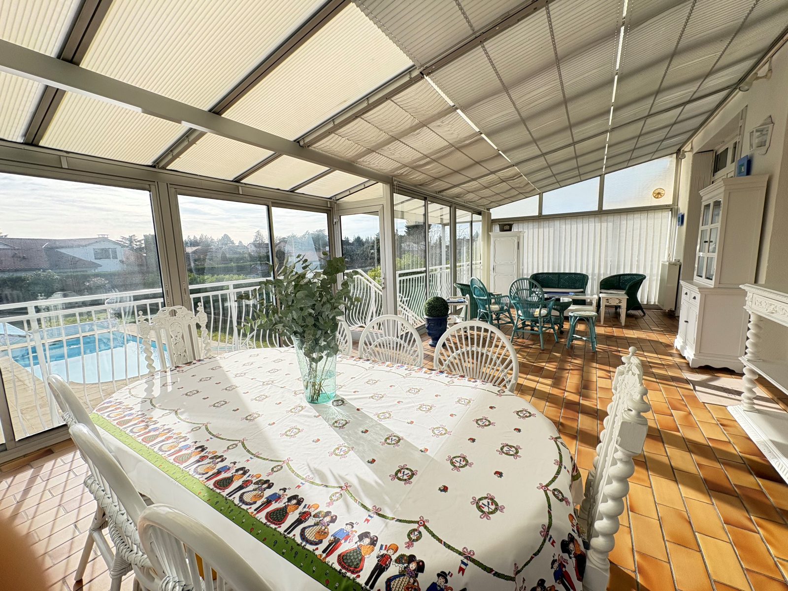 La pièce de vie principale, composée d’un salon-séjour de 40 m², s’ouvre sur une spacieuse véranda de 40 m² exposée plein sud, offrant une luminosité exceptionnelle et un espace de vie supplémentaire, tourné vers l’extérieur.