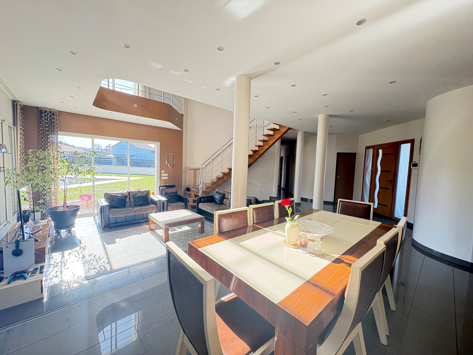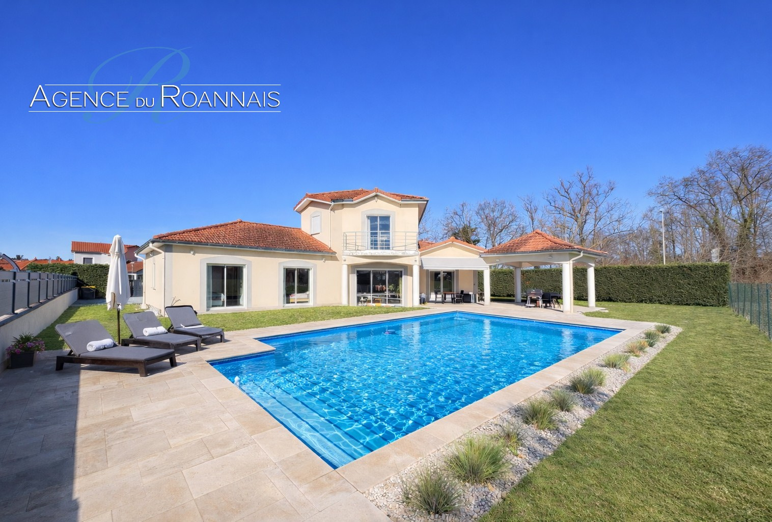 L'Agence du Roannais vous présente à la vente cette villa récente (construction 2011) Située aux portes de Roanne, dans un secteur calme et résidentiel,. D'une surface habitable d’environ 200 m² sur 2 niveaux, elle se compose en rez-de-chaussée d'une entrée avec vestiaire, wc, un lumineux salon séjour séjour ouvert sur le jardin, les terrasses et la piscine, offre un cadre de vie convivial et apaisant. La cuisine spacieuse, entièrement équipée, allie élégance et fonctionnalité.