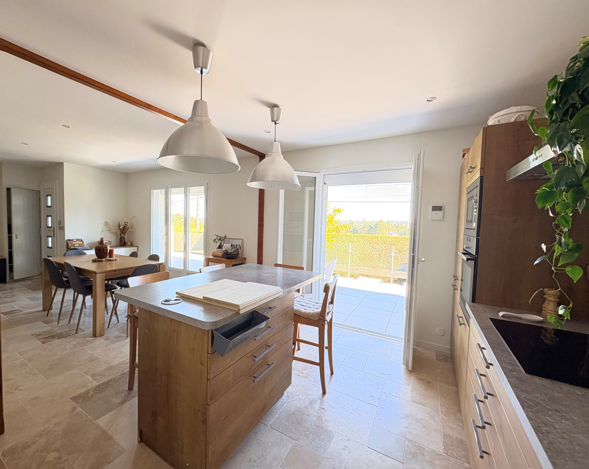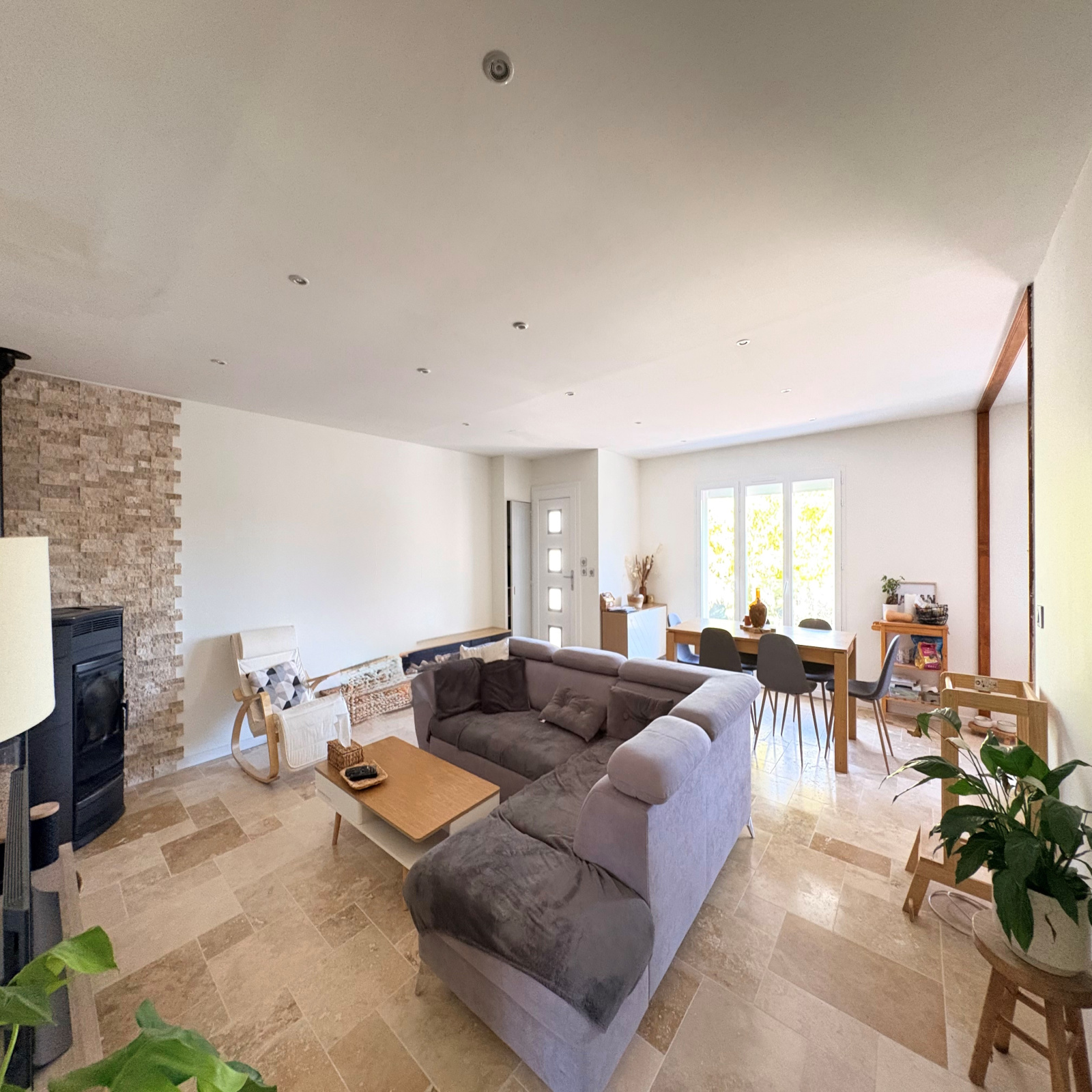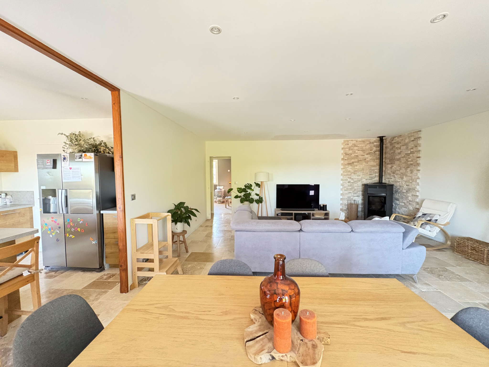Aucuns travaux à prévoir : chauffage électrique + poêle à granulés, double vitrage PVC et volets roulants électriques centralisés, crépis récemment refait, cuisine full équipée, salle d'eau refaite, terrasse de 65m²