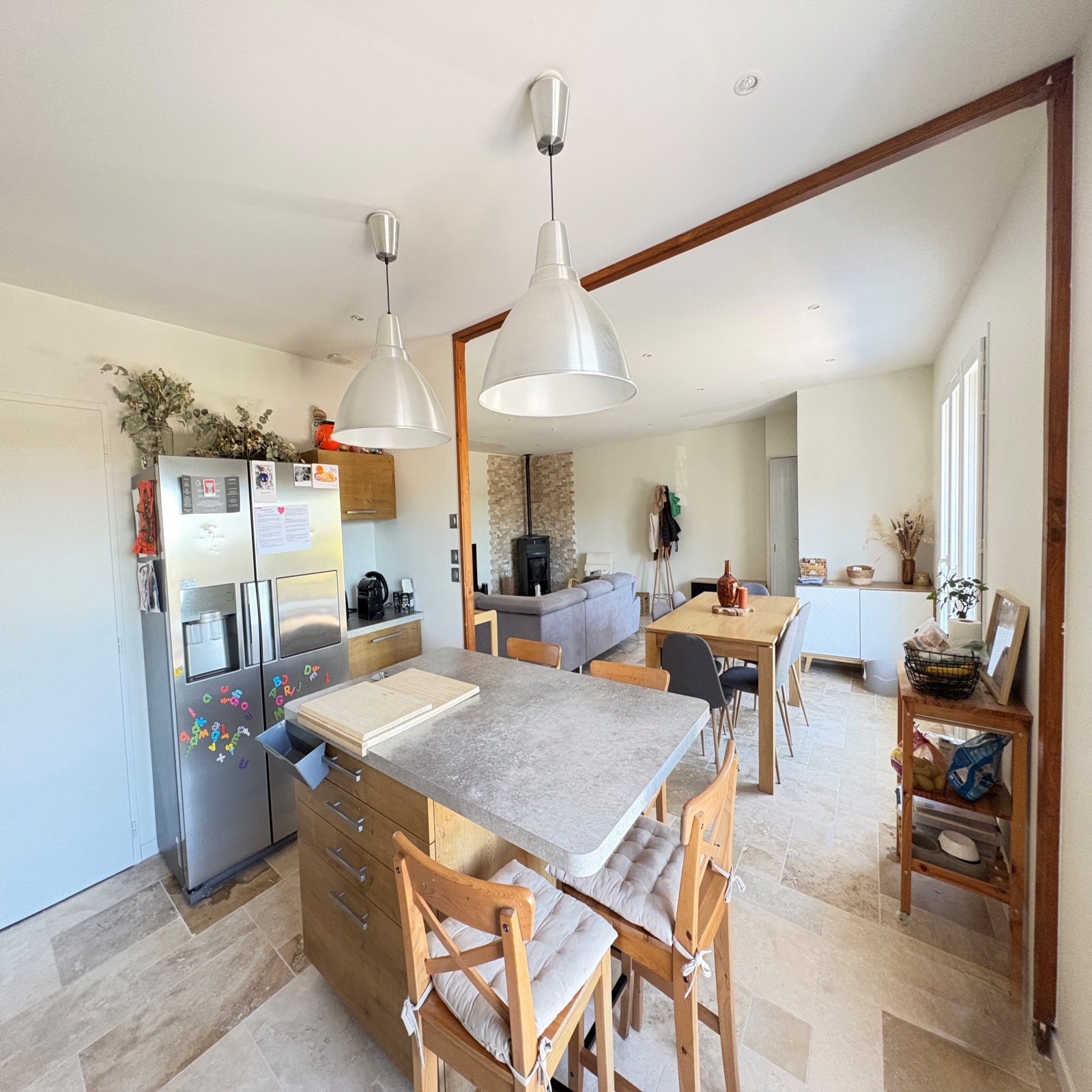 Ce pavillon de plain-pied en excellent état offre une surface habitable d'environ 117m² et se compose d'une magnifique cuisine toute équipée ouverte sur un lumineux salon séjour, chaleureux grâce à son poêle à granulés, portes fenêtres donnant accès à une terrasse de 65m², 4 chambres dont une avec dressing, une salle d'eau récemment rénovée avec douche italienne et WC indépendant.