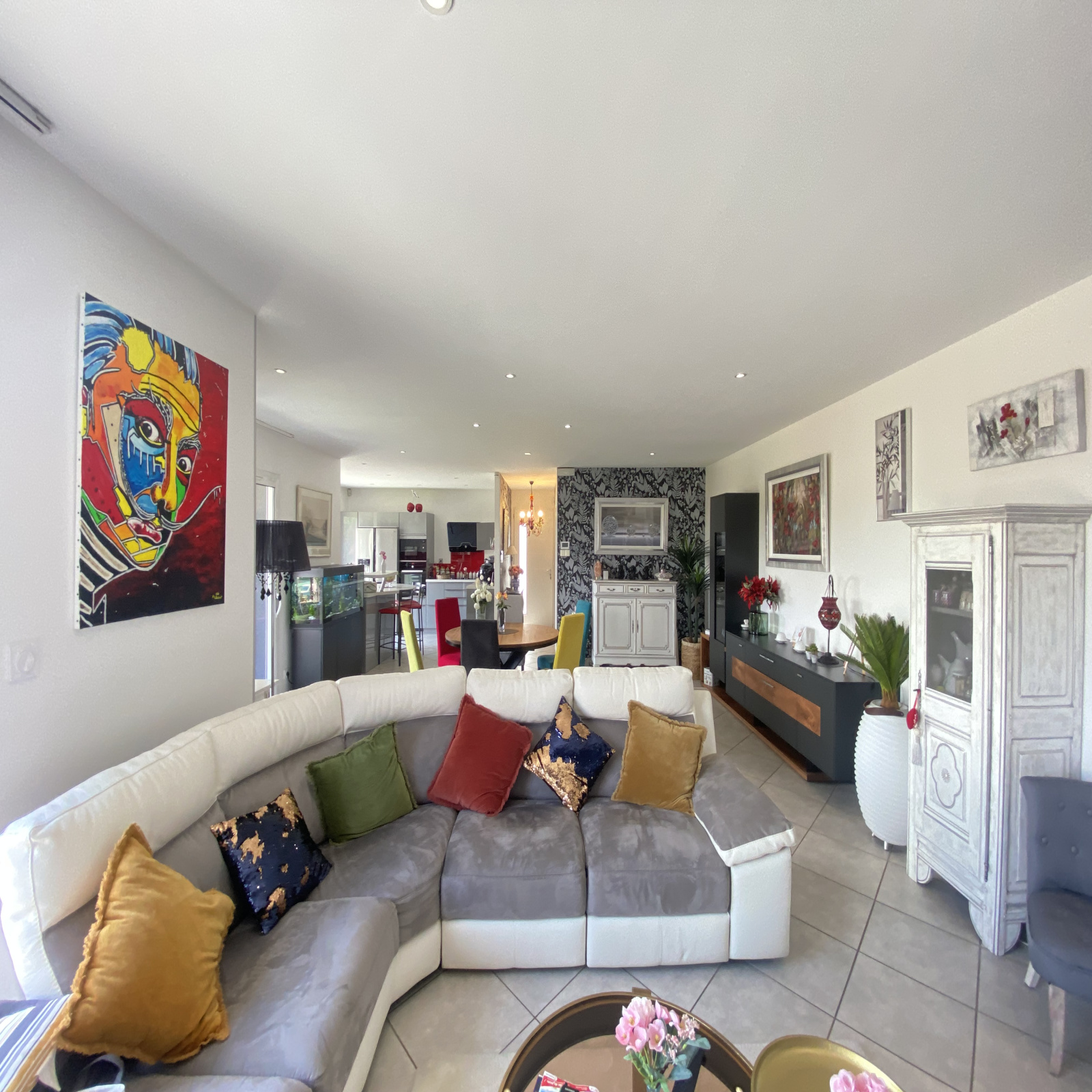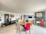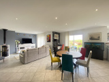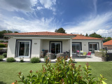 Cette villa récente (construction achevée en 2016) offre une surfacee habitable d'environ 115m² de plain-pied dans un excellent état général et se compose d'un hall d'entrée, une buanderie, une cuisine équipée moderne ouverte sur un agréable séjour salon avec cheminée, lumineux grâce à ses baies vitrées donnant sur la terrasse de 49m² exposée Sud-Est.
