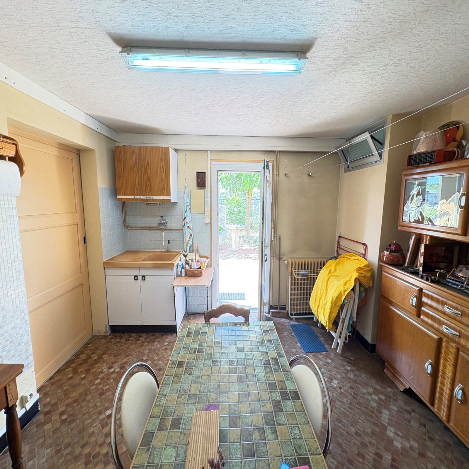 D'une superficie habitable d'environ 119m² sur 2 niveaux elle se compose au rez-de-chaussée d'un hall d'entrée, une cuisine d'été donnant sur la cour ombragée, une chambre avec douche, WC indépendant ainsi que 2 grands garages (23.84m² et 20.73m²) avec portes automatiques.