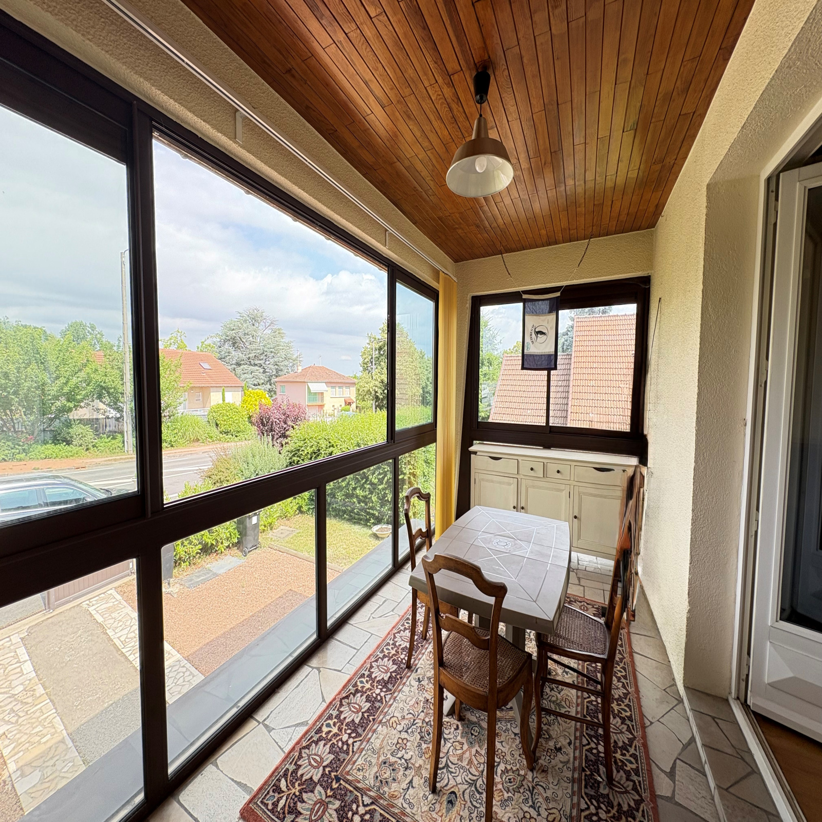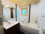 A l'étage une grande cuisine indépendante avec accès à un balcon véranda de 11m², un salon séjour avec cheminée, 2 chambres, une salle de bains et WC indépendant.