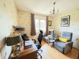 D'une superficie habitable d'environ 89 m² elle se compose au rez-de-chaussée d'un hall d'entrée, un grand garage de 50m² avec porte automatique, une chambre d'appoint, buanderie avec douche et wc.