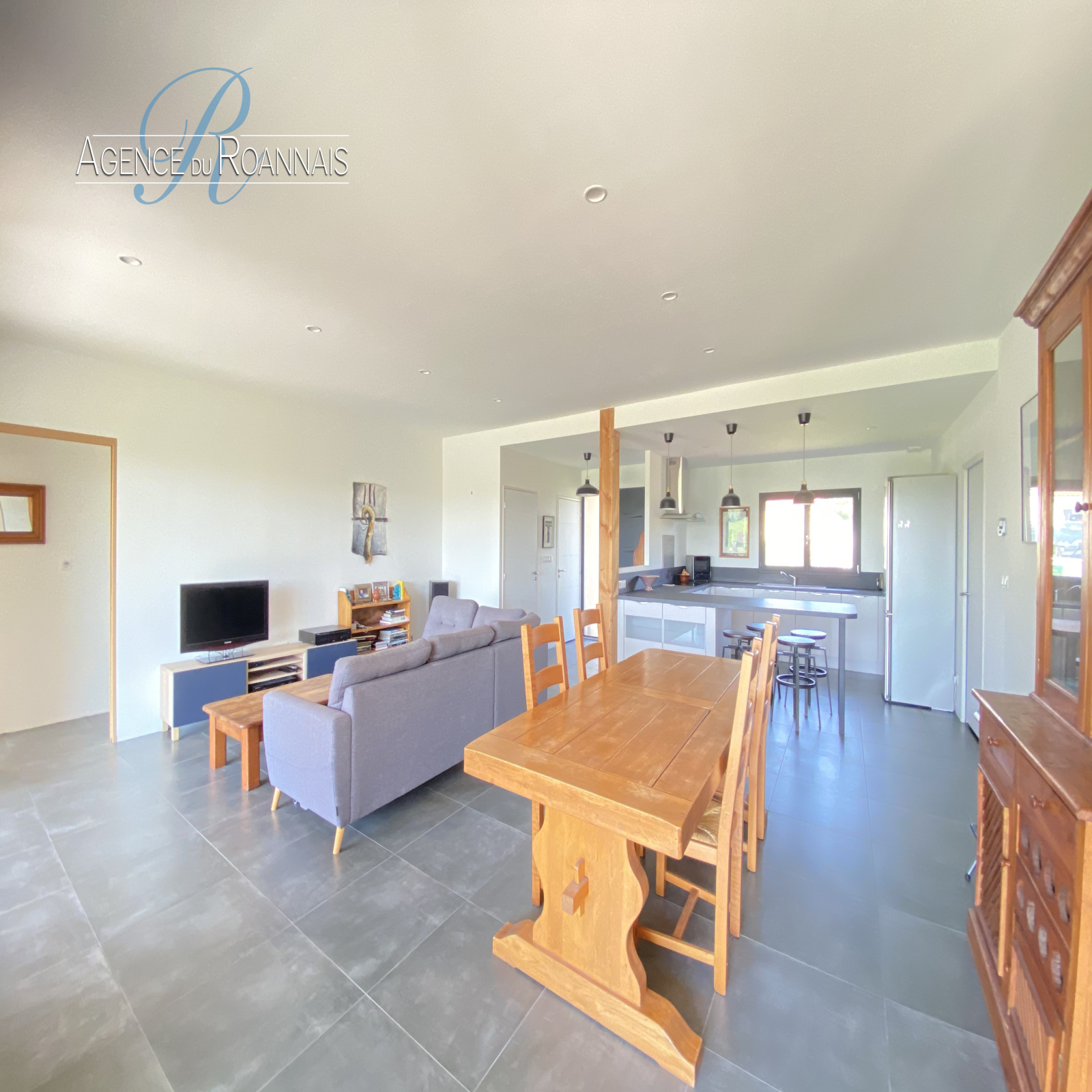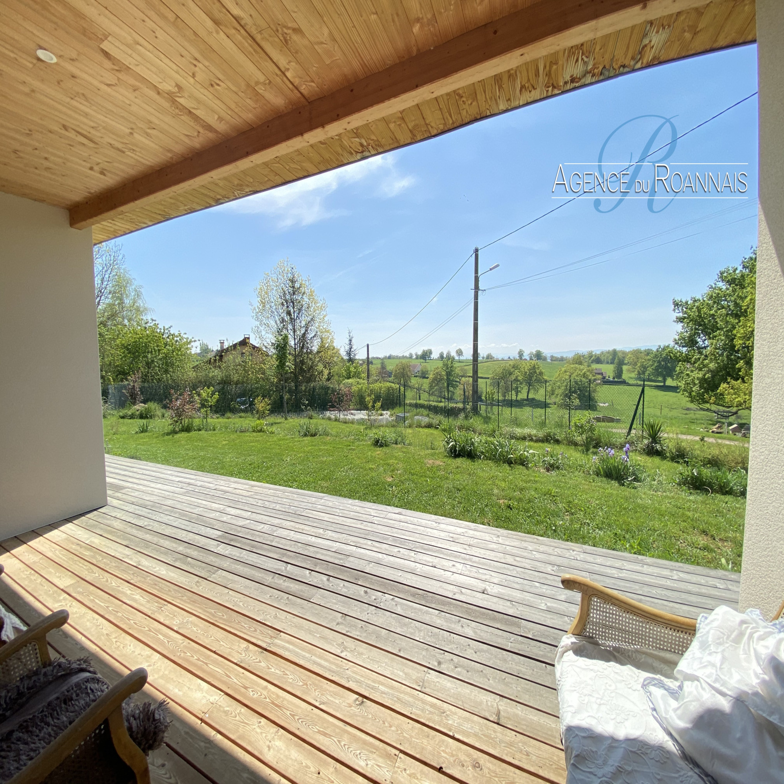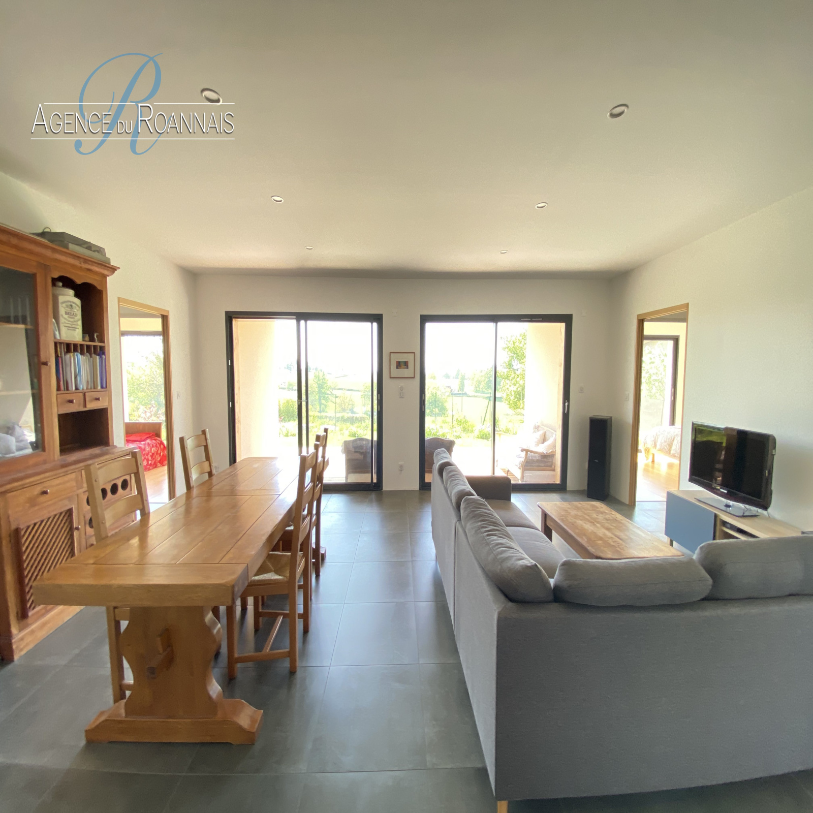 L'Agence du Roannais vous présente cette nouvelle exclusivité ! Située proche de CHARLIEU, sur la commune de Saint Hilaire sous Charlieu, Villa contemporaine de construction récente de 2018, offrant une surface habitable d'environ 128m². Elle se compose d'une entrée, avec vestiaire et WC indépendant, une lumineuse pièce de vie avec 2 baies vitrées donnant accès à une terrasse en bois couverte, cuisine équipée us, chaufferie buanderie, Le coin nuit se compose de 4 chambres dont une suite parentale avec sa salle d'eau et une seconde salle d'eau. Agréable terrain d'environ 907m² avec une belle vue sur la plaine environnante Prestations de qualités : construction en ossature bois, toit terrasse végétalisé prochainement, chauffage au sol par pompe à chaleur, isolation performante Informations pratiques pour cette villa à vendre sur Saint Hilaire sous Charlieu : DPE : Classe A ; diagnostic réalisé le 03/05/2022 : coût estimatif des consommations annuelles entre 440 € et 650 € Mandat de vente exclusif N°06438, ref agence : VVI160004563 Contacter votre conseiller Jérémie STRINO au 06.74.79.82.46 ou jstrino@agenceduroannais.com Les honoraires sont à la charge du vendeur