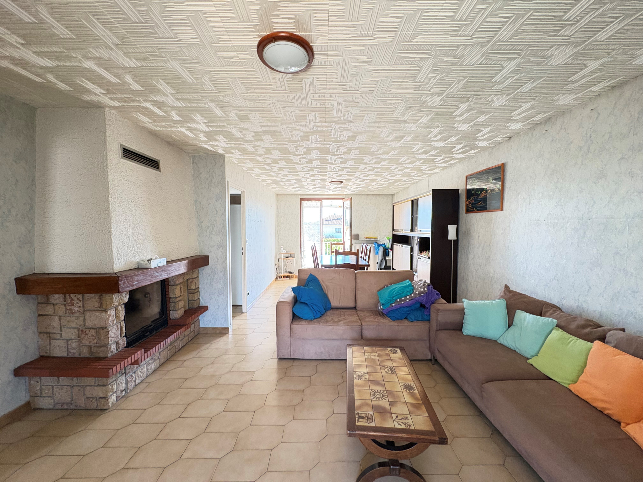Cette maison mitoyenne par 1 côté offre une surface habitable d'environ 120m² répartie sur 2 niveaux, et se compose actuellement à l'étage d'un hall d'entrée, un salon séjour de 31m² avec cheminée, porte fenêtre donnant sur un balcon côté Sud, une cuisine indépendante, 2 chambres + 1 bureau, une salle de bains et WC indépendant.
