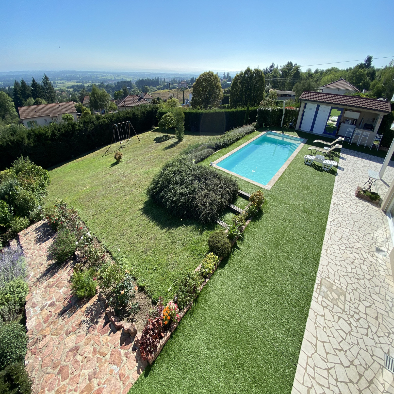 Au cœur de la Côte Roannaise, Dans un cadre agréable avec une vue magnifique sur la Plaine, propriété de charme bénéficiant d'une rénovation de qualité avec de belles prestations.